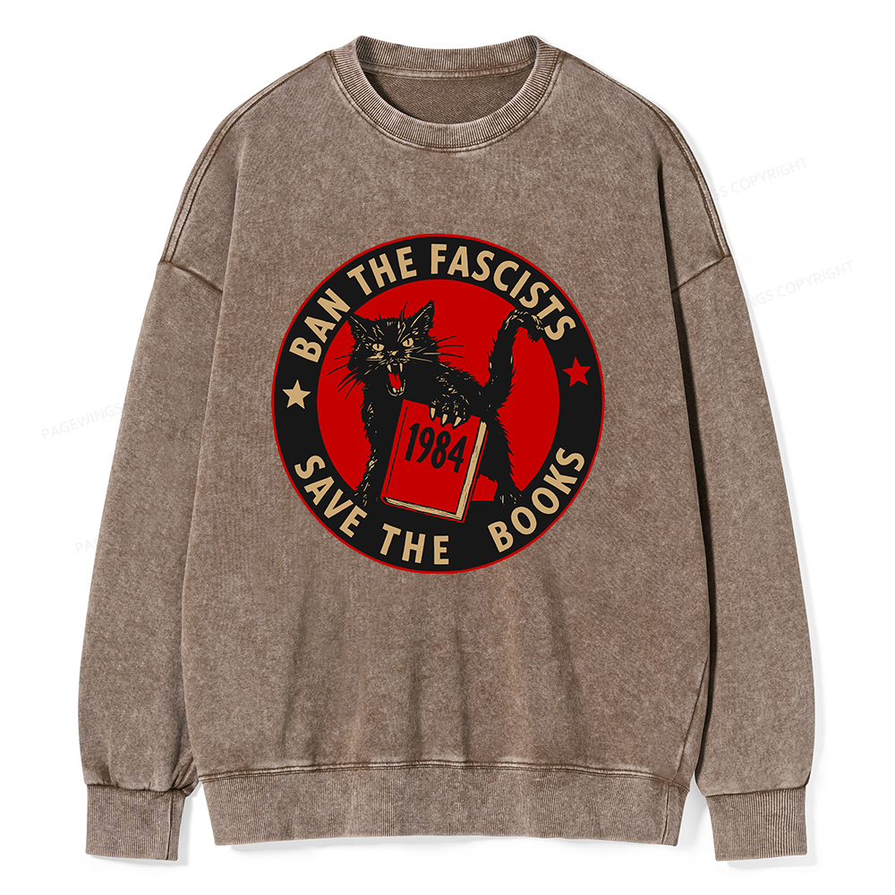 Sportflowfit Ban The Fascists Save The Books Unisex Washed Sweatshirt